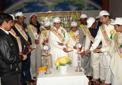 Lightening the Candles at the Shaswat Yogic Kheti Campaign are Senior Divisional Magistrate Bro. P.P.Anjor, Chief Scientist of Indian Vegetable Research Centre Dr.D.R.Bharadwaj, Block Development Officer Dr.D.R.Vishwakarma, Municipal Chairman Sis.Hasina Begum, BK Surendra Bahen, BK Kusum, BK Saroj, Dr.Ramkaul Tripati, Ex-member of Krishi Bodh Pathistan BK Dipendra along with other brothers and sisters.