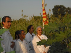 After on-field observations - BK Gayatri (USA), BK Gopi(UK), BK Shweta( Germany ), BK Piero( Italy ) and BK Sarla (National Co-ordinator, RDW) performing Rajyoga Meditation to a Sustainable Yogic Agriculture farm.